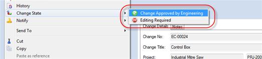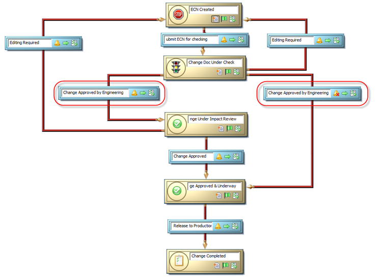 In the Workflow you will see that there are two Transitions that share the same text 'Change Approved by Engineering'. This means that the User will only see one option but based on the Transaction taken the file will go one of two ways.