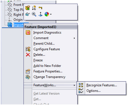 Once opened the option to run feature works is available via a right mouse click on the imported solid body.