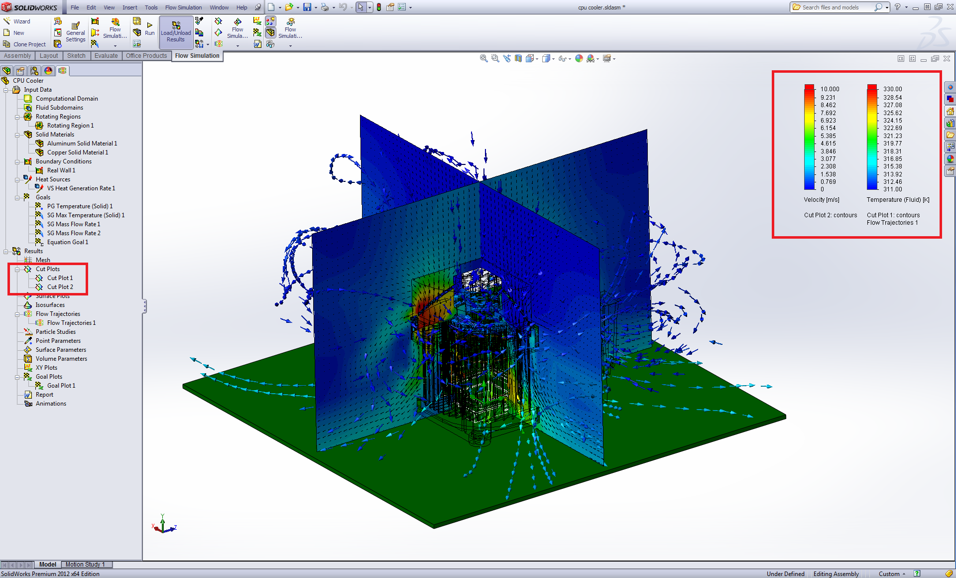 In SOLIDWORKS Flow Simulation there are a number of ways in which you can display Result Plots and show them simultaneously on screen.