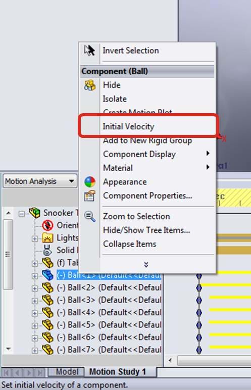 How come I have missed this capability - after all it sounds simple? The reason is that the property manager for 'Initial Velocity' is somewhat hidden away and not on the ribbon toolbar. To set up an initial velocity, the user must right mouse button click on the part in the Motion tree. From there you can pick the 'Initial Velocity' option and then enter magnitudes and directions for linear and angular velocity see screenshot below ...