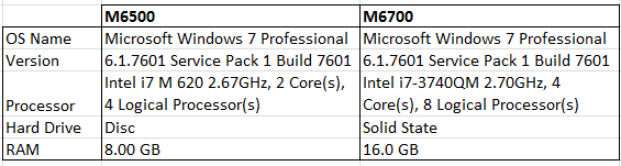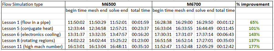 Running a performance test in Flow Simulation compared against a Dell Precision M6500, the M6700 gives around