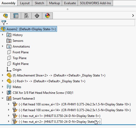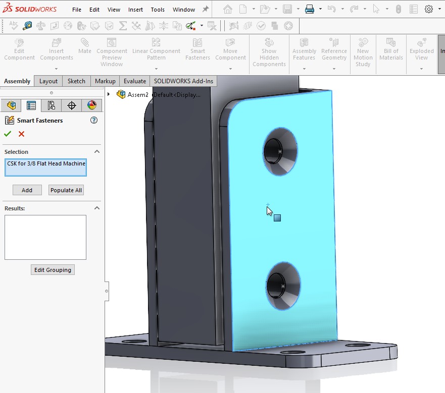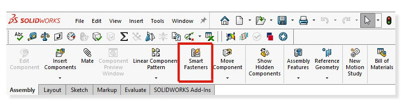 “Smart fasteners” is a really useful time saving tool, allowing you to automatically insert toolbox fasteners such as bolts and screws into an assembly providing there is a standard hole. The tool uses both ANSI inch and metric alongside standard components and provides the opportunity to use your own custom fasteners from the toolbox database.