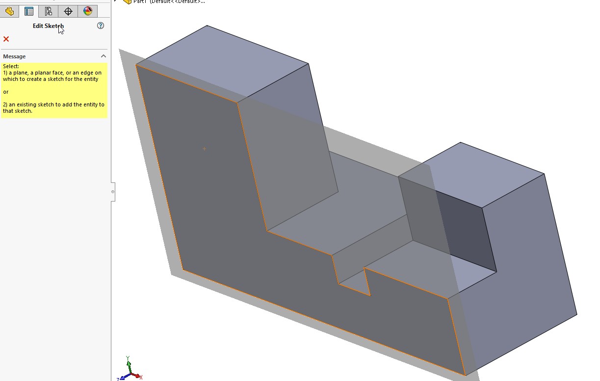 This tool allows you to sketch on multiple faces without having to keep opening and closing sketches. You can simply just hover over the next face that would like to sketch on and then carry on sketching on a different face. SOLIDWORKS will highlight the face in grey to show you where your new sketch will be placed and you just continue on sketching as normal (as shown below).