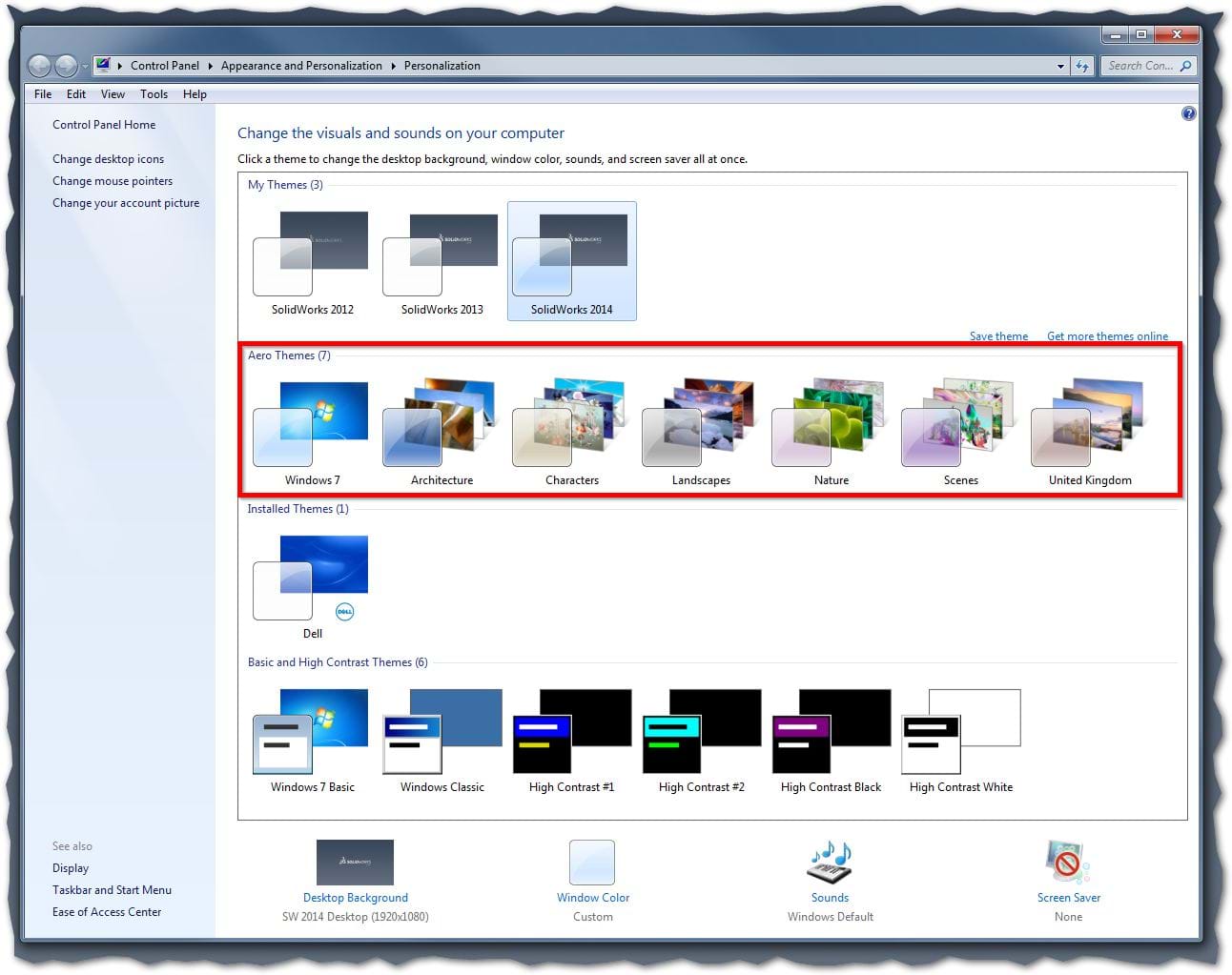 SOLIDWORKS recommend that users enable AERO themes in Windows. This is because non-aero and basic themes actually disable 3d acceleration settings to preserve memory and resources (these basic themes are designed for PC’s that do not contain a dedicated GPU in order to help reduce strain on the CPU).