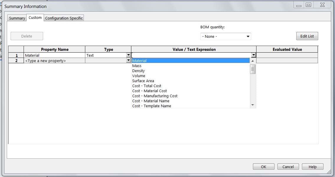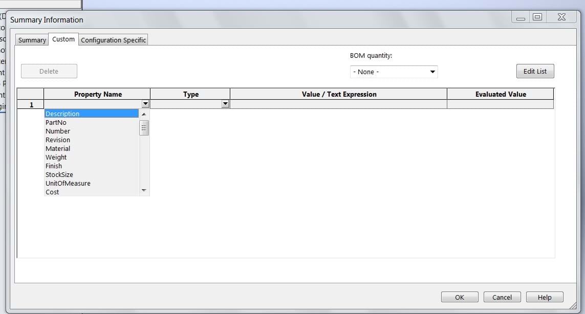 Bills of Materials can also read off these properties from the individual parts that you have used in your assembly.