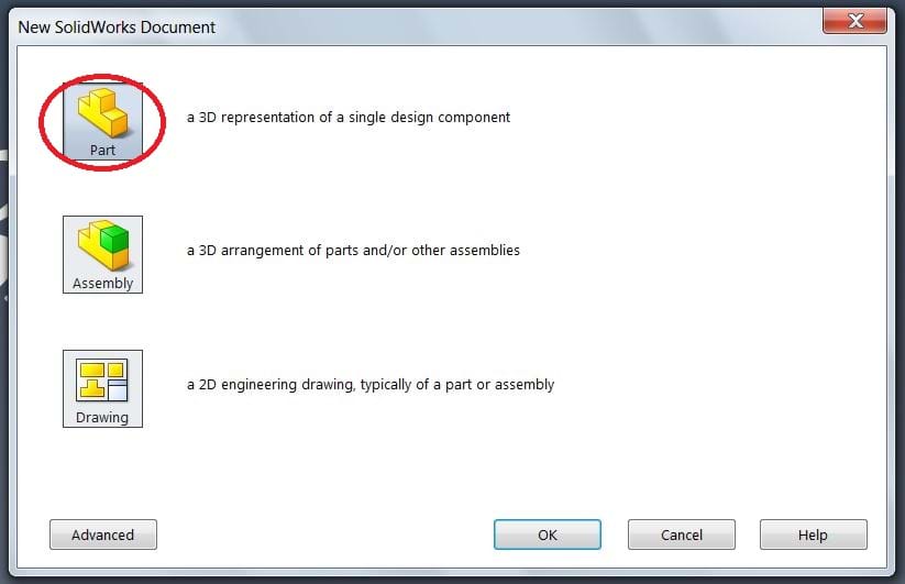 The next time you create a new part, click on the Advanced button at the bottom left, below the three big