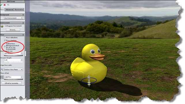 Once I had my duck I then took it into photo view to create a render. And using the flatten floor option within edit scene I can make my duck look as if it has been placed in the environment and not floating around…..