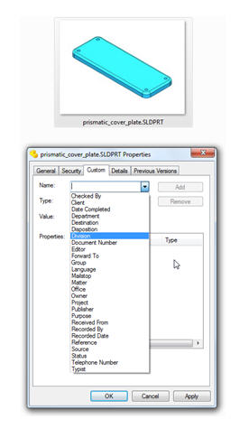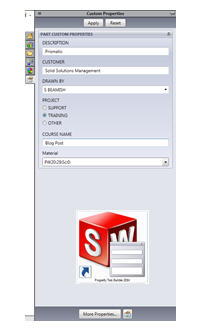 Custom properties are used throughout SOLIDWORKS- they are simply text based information that helps further describe and add information about a document - they are sometimes known as metadata.
