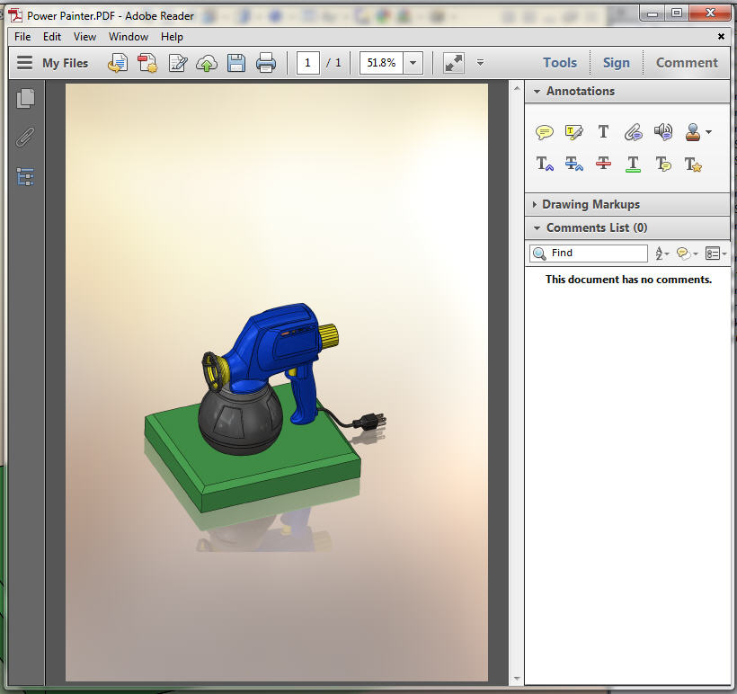 model. (Zoom in with with right mouse button, rotate with the left). Options are limited compared to eDrawings, such as no measure, section or explode functions.