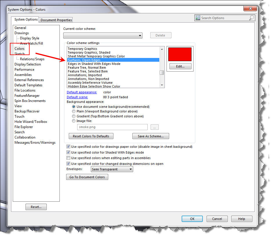 This makes it far easier to spot, and a further tip is to use a white background and set the display model to "Hidden Lines Removed" that way you can pick up the red lines against the black lines without being distracted by the background and model appearances. Then it is just a case of filling the gap!