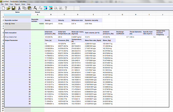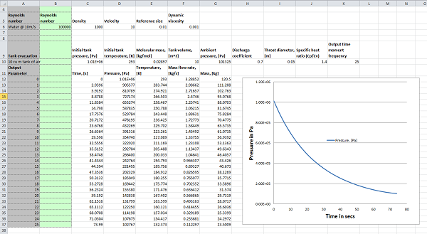To prove it works, I have created a Calculator sheet for calculating the Reynolds Number of water flowing at 10m/s over a cylinder of 100 mm diameter and also the results of the tank evacuation. Both can be on the same sheet ...