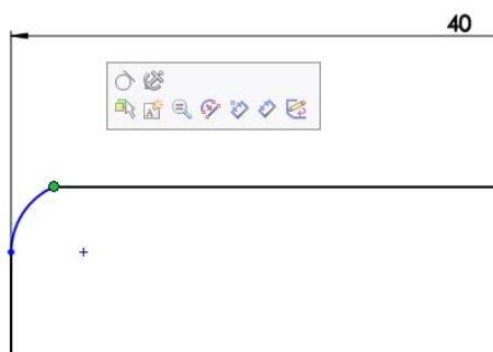 In SolidWorks 2014 to make a line and an arc tangential, you had to select both sketch entities. Now in 2015 you can simply select the common vertex and the same sketch relations are presented. This is true of any sketch geometry that shares a common vertex.