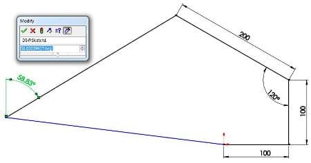 When sketching, on occasion you may want to add an angle dimension and use a horizontal or vertical sketch line to reference from, but what do you do if none are nearby? In SolidWorks 2015 you now have the ability to dimension between a line and an imaginary horizontal or vertical line.