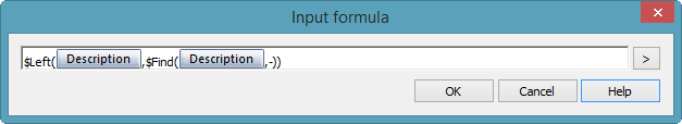 Getting the information to the left of the hyphen is pretty straightforward. We simply need to use a Left function alongside a Find function to locate the hyphen's position within that Variable. To insert a formula, select the Variable Control on the File Card then from the properties panel use the fly out menu alongside the 'Input Formula' box to add the function you require, or the variable you want to add into that formula.