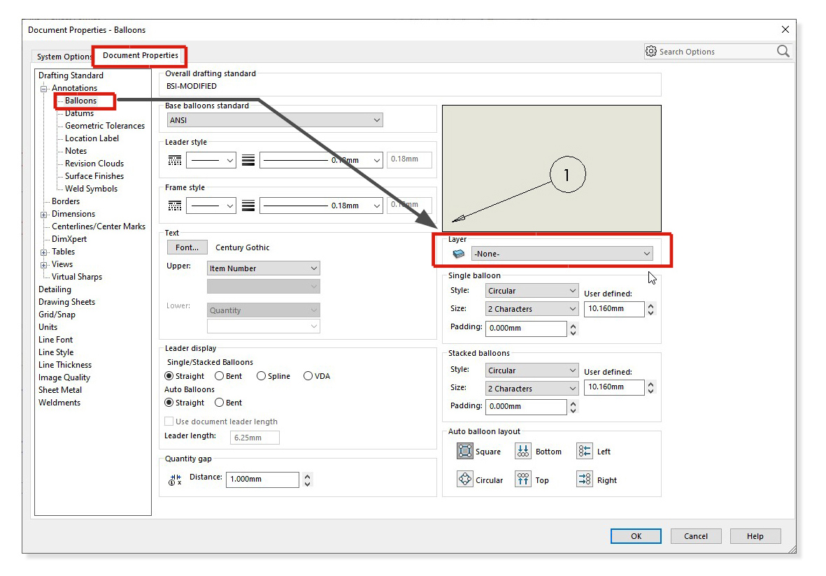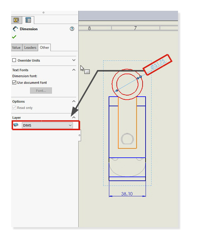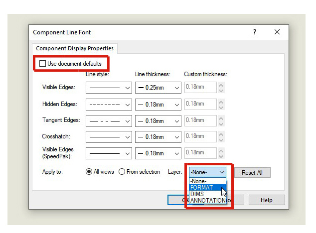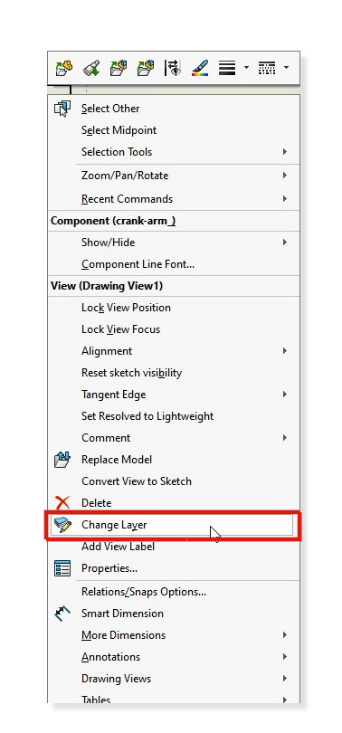 SOLIDWORKS allows the use of layers in a similar fashion to