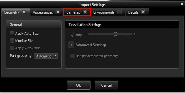 -          New option of importing “Camera” - currently this imports the angle/ camera angle the the SOLIDWORKS file was last saved in so not a true import of all camera properties/ multi cameras yet.