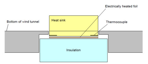 If we take a look at another example, Plate Fin Heat Sink Cooling by Forced Convection. The study tested an aluminium heatsink which is heated by a 10 W electrical heater placed on top of a polystyrene block in a wind tunnel and tested at 5 different flow conditions.