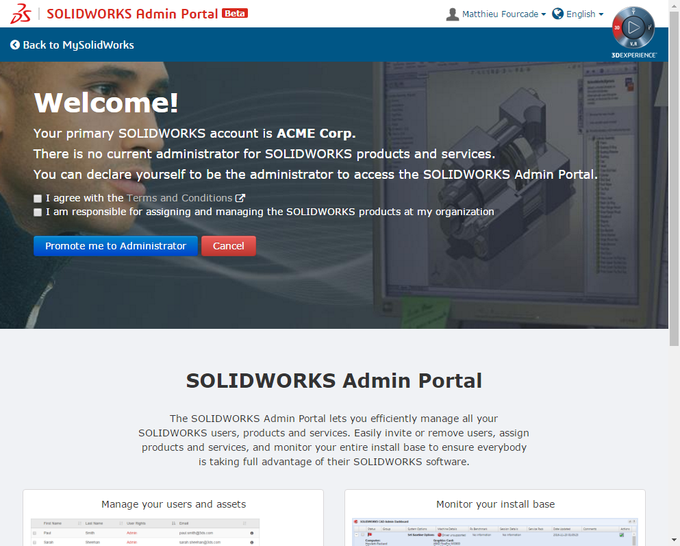 All customers can use the SOLIDWORKS Admin Portal, regardless of subscription,