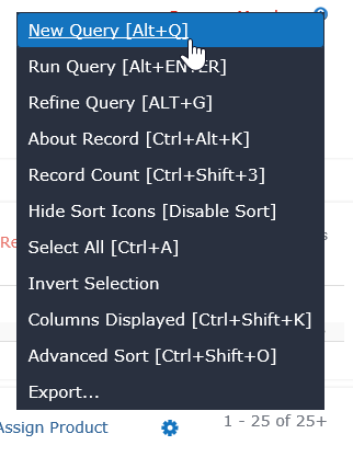 I use a “New Query” from the gear icon (ALT + Q shortcut) and then can click into any of the columns to act as text boxes to type in the value I wish to search for. Wildcards (*) are accepted here too. You can also sort columns in numerical or alphabetical order, and using the “gear” icon again can change the display of columns visible to you (Ctrl + Shift + K). Once you have typed in your query, press return/enter on the keyboard to run it. Note the “Export” option at the bottom of the list - you can export any of the search/query results, as well as the entire set of data to view in programs such as excel.