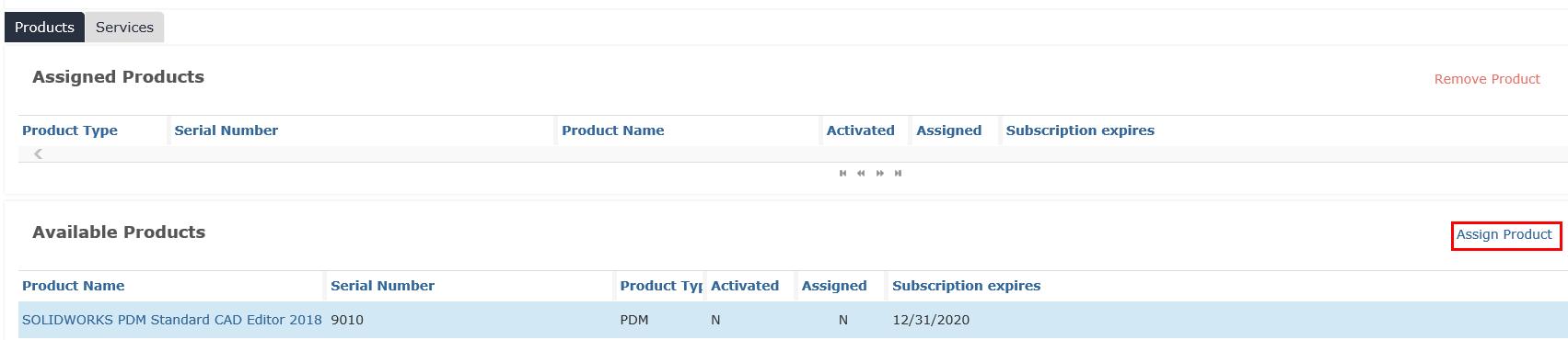 As above you can see information about a Product (SOLIDWORKS license) after running a query when assigning products to named users. You can also use the Products tab and run similar queries. The filters on the left hand side are your friend here, so use them wisely, as well as quick searches for product name or serial key if you prefer not to use a full query.
