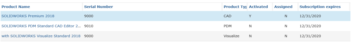 • Find serial keys for add-on products issued as part of the subscription process (e.g. SOLIDWORKS Visualize).