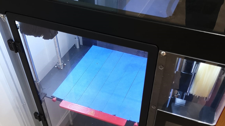 We also added blue painters tape as the adhesive Buildtak on the build plate may cause this part to be difficult to remove due to the large base of this model.