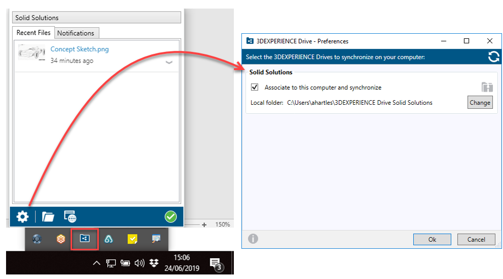 designate the local working folder the 3DEXPERIENCE will synchronise with