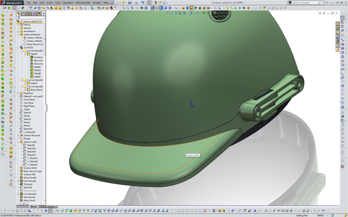 “It would be easy to make a visor that closed up all the gaps where a ball could get through, but if the player couldn’t see properly through it, he wouldn’t wear it. Using SOLIDWORKS Simulation to explore the strengths and weakness of the helmet structure, I was able to get the best out of the mouldings with the minimum amount of metal and plastic.”