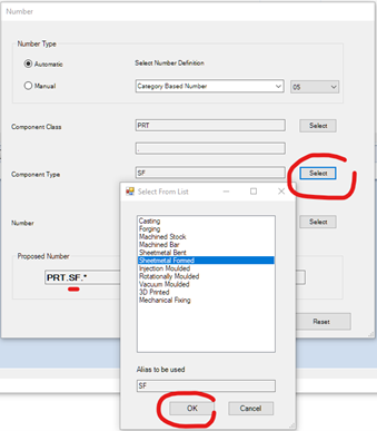 - Semi-significant numbers can be assigned where simple classification requirements vary a prefix based on a high level classification. This could be to differentiate between a designed component and a bought in part. This could also be to tag a component as being Project or Product Specific, by (for example) including an inherited Project or Product number within the prefix that the sequential counter is assigned to. It could also be used to differentiate between types of Assemblies, where (for example) a top level arrangement is numbered differently to the subassemblies that make it up.