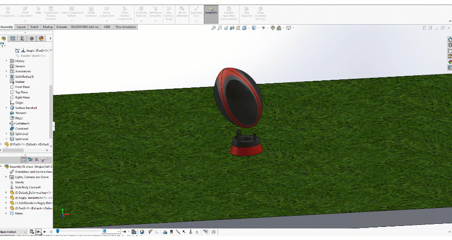 Here we can see there are no interferences present with our current tolerances. This is largely because both parts are made of the same material. So the final step is to see if the ball will balance on our final tee using SOLIDWORKS motion analysis!