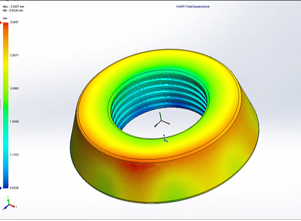 Here we can see the model is going to shrink inwards. This could cause issues with the thread fit on the other model, to check this we will export the deformed shapes and run an interference detection.
