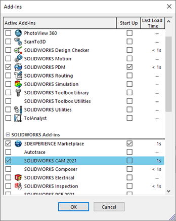 To get using SOLIDWORKS CAM all you need to do is to check the add-in on in the add-ins menu which can be access easily on the drop down of the settings cog at the top of a SOLIDWORKS window.