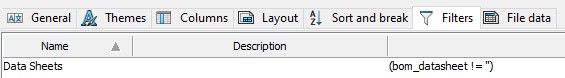 In the filters tab we should create a rule that allows us to see just the instances with a Data Sheet associated.