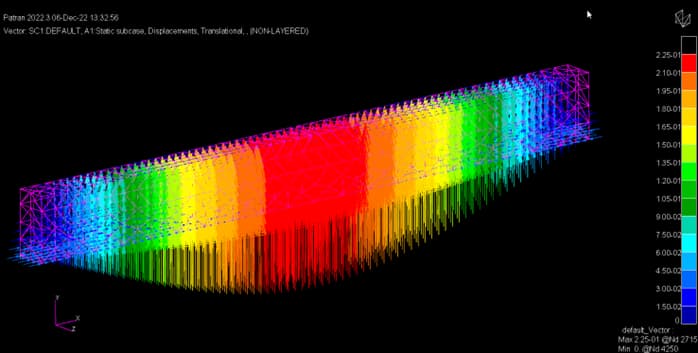 With the deflection result for the global model we can use the FEM GUI (in this case MSC Patran) to capture the vector field of deflection: