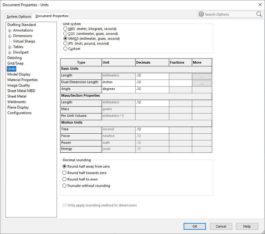 Every part you create using the custom template will have the custom properties already assigned, the unit settings you require, and anything else you’ve built in.