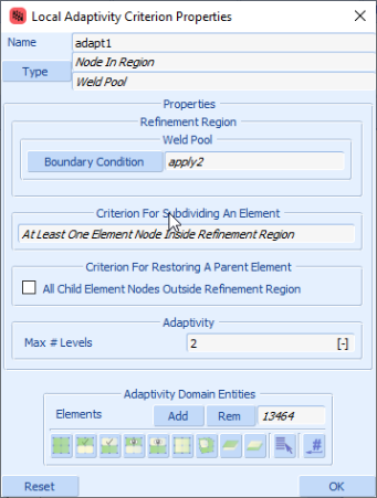 As the complete welding sequence will cover quite a lot of the structure we can make use of the adaptive meshing capability mentioned in a previous article to keep the overall model size down to speed up what can be a lengthy solution.