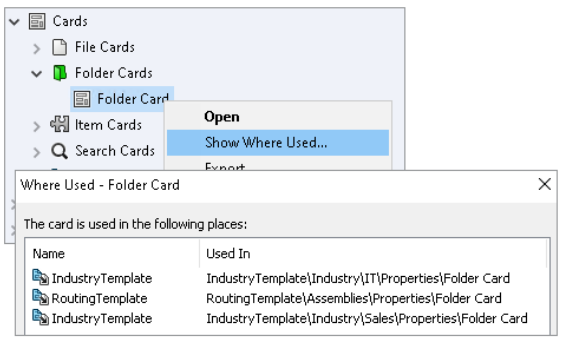 To help manage this new functionality, you can see which templates a given data card is used in by right-clicking on the card in the Administration Tool and selecting ‘Show Where Used’.