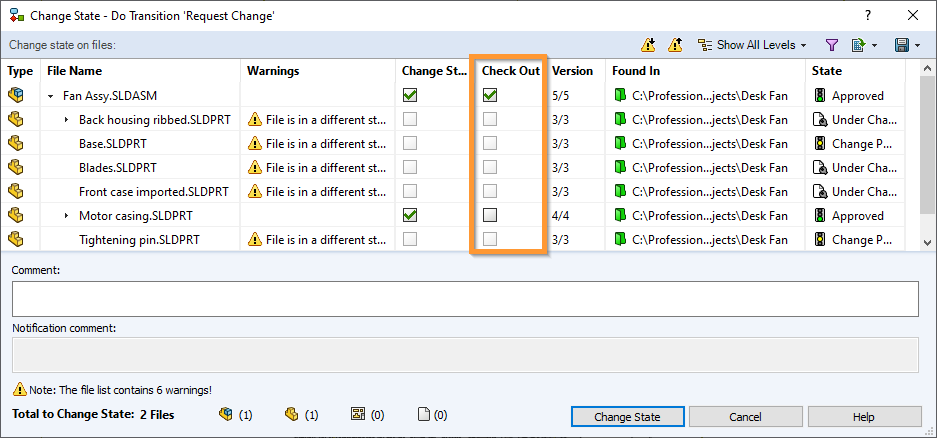 When changing state on a file, you now have the option to immediately check the file out from the Change State dialog.