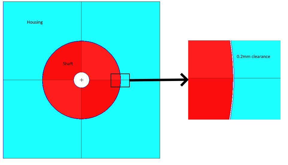 As an example, consider this 2D model of a housing/shaft. There’s a nominal clearance between the two of 0.2 mm on a 10 mm radius.