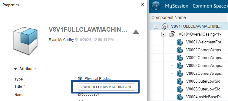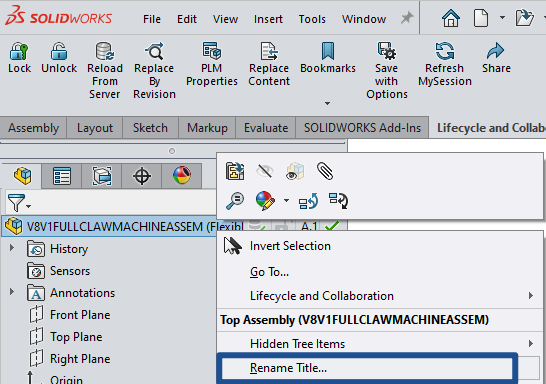 Titles can be edited from the FeatureManager Tree in SOLIDWORKS or the properties view in the 3DEXPERIENCE add-in. Title forms the backbone of duplicate name checks inside 3DEXPERIENCE, as an option can be switched on to force title uniqueness.
