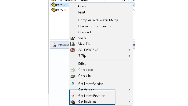 And finally, here, whilst it has always been possible to ‘get latest Version’ in PDM we now have an additional option to “get the latest revision.” For enable this a Latest Revision variable has been added to the existing system variables and is now displayed on the Version Tab.