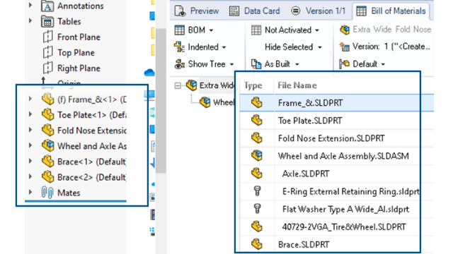 There are also a few changes to PDM behaviour that address some extremely popular enhancement requests. Have you ever been frustrated that the BOM (Bill of Material) in PDM seems to have a random order that does not match the SOLIDWORKS Feature Manager for the Assembly? Well with PDM 2025 the Bill of materials (BOM) is now more intuitive, following the same order as the SOLIDWORKS FeatureManager.