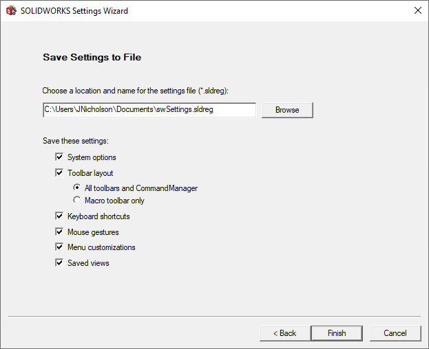 Top Tip: If you’re like to customise your SOLIDWORKS settings, it’s worth backing them up every now and again! Drop-down System Options to find Save/Restore Settings and follow along with this tutorial video. From there, you can save settings from System Options to Mouse Gestures.