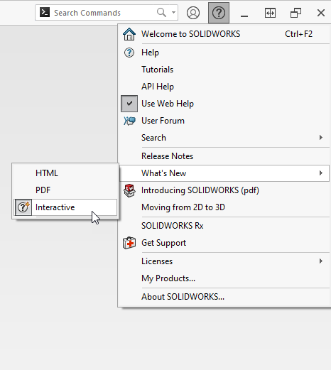 You may also find it worthwhile to toggle on the ‘Interactive’ feature whenever you upgrade. This notifies you of new features within your own SOLIDWORKS interface, showing a ‘?’ on any property managers that have been updated.