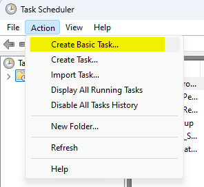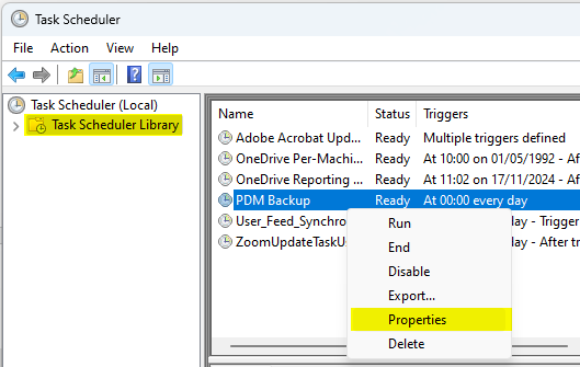 - In the Task Scheduler library, right-click the new action and select ‘Properties’.