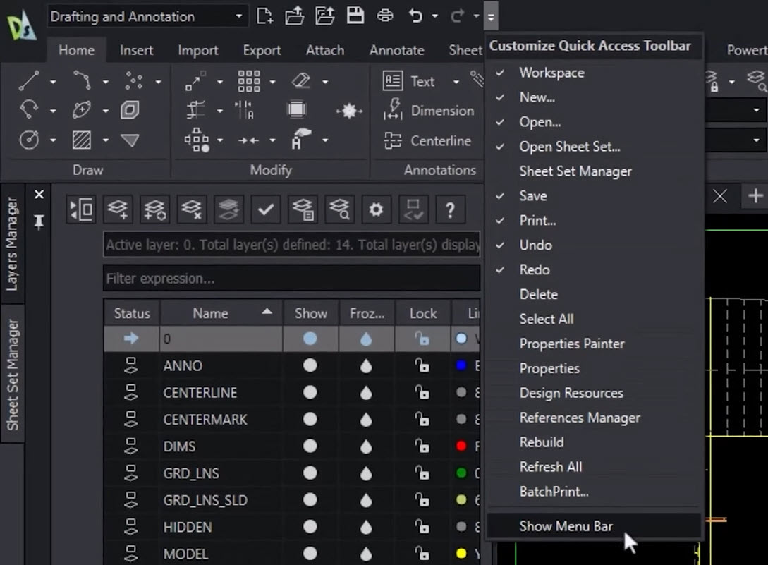 Previously, users had to choose between a traditional menu-based interface and the ribbon-based interface, but with version 2025, you can now keep the menu bar active across all your workspaces.