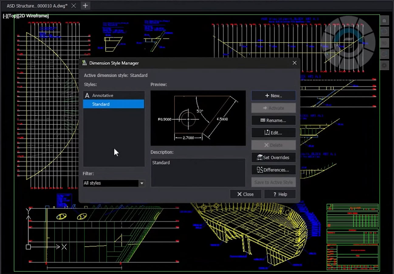 This new window allows users to manage dimension styles in a more organized manner, ensuring that dimensions are consistent throughout the drawing and easily customizable.