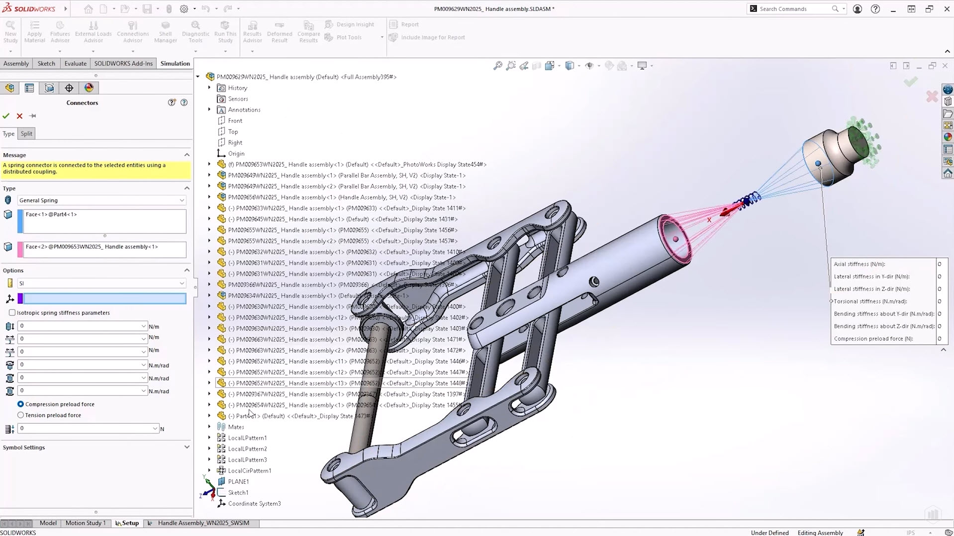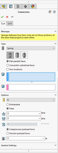 A new “General Spring” connector is available in SolidWorks Simulation Professional and SolidWorks Simulation Premium. The original spring connector is still available, but a new and different range of functionality is available in the general variant.