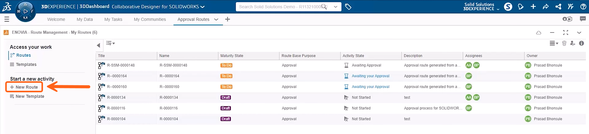 Both dashboards can be accessed through the 3DDashboard app. The ‘My Data’ tab is what we will be using to manage approval routes.
