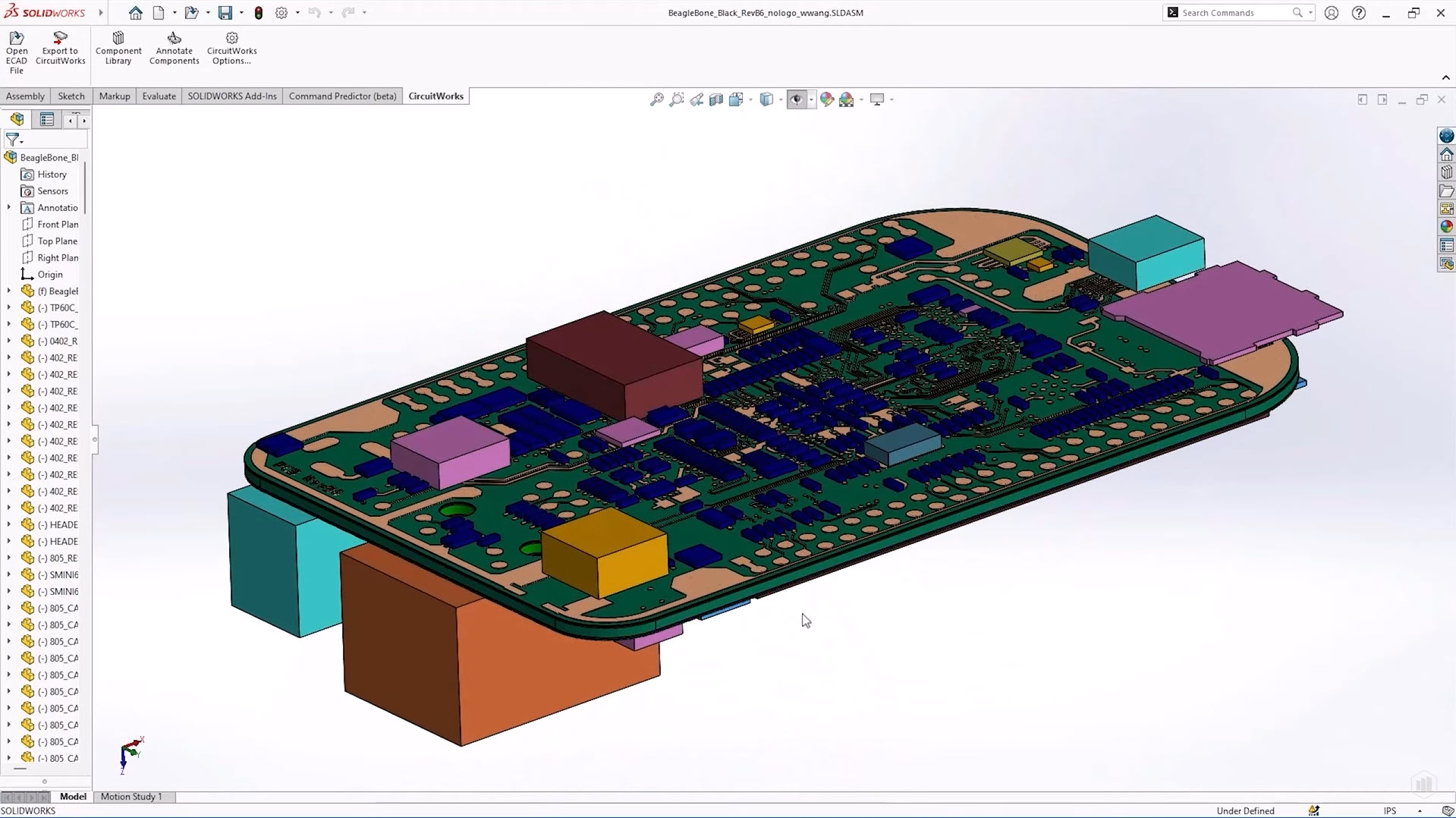 SOLIDWORKS 2025 promotes collaboration between electrical and mechanical engineers by making it easier to work with detailed circuit board data. With the new capabilities in CircuitWorks, you can leverage downstream engineering tools for tasks like thermal analysis and shock validation.